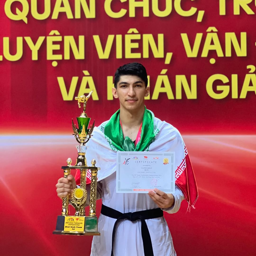 آرین سلیمی، متولد ۱۶ دسامبر ۲۰۰۳ در شهر کرمانشاه، یکی از چهرههای درخشان تیم ملی تکواندوی ایران در رده وزنی +۸۰ کیلوگرم است. با قدی معادل ۱۹۸ سانتیمتر و توان بدنی بالا، او یکی از امیدهای اصلی ایران در رقابتهای بینالمللی محسوب میشود.