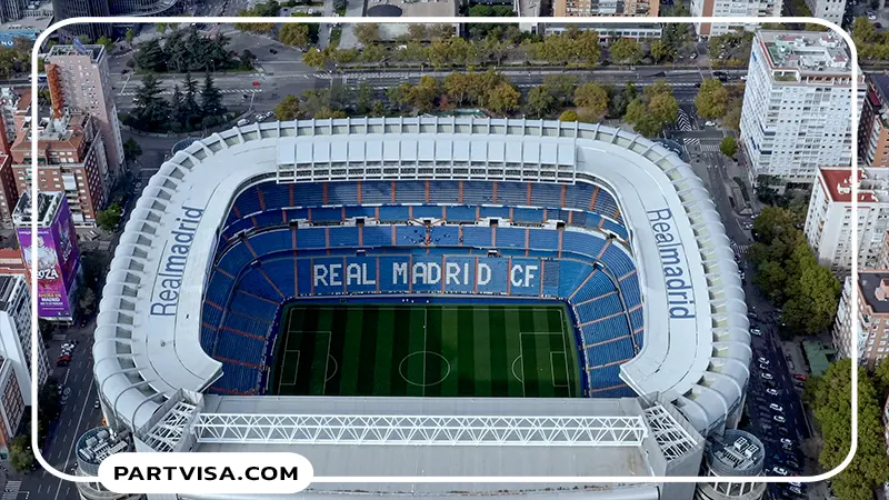 سانتیاگو برنابئو (مادرید، اسپانیا): استادیومی با ظرفیت تقریبی ۸۵٬۰۰۰ نفر، سقف جمعشونده و صفحهنمایش ۳۶۰ درجه – نمادی از فوتبال