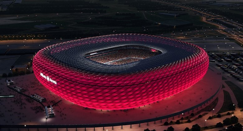 | ۴ | آلیانز آرنا (مونیخ) | ۷۰٬۰۰۰–۷۵٬۰۰۰ | معماری نئون داخلی؛ اولین با نمای خارجی قابل تغییر رنگ |