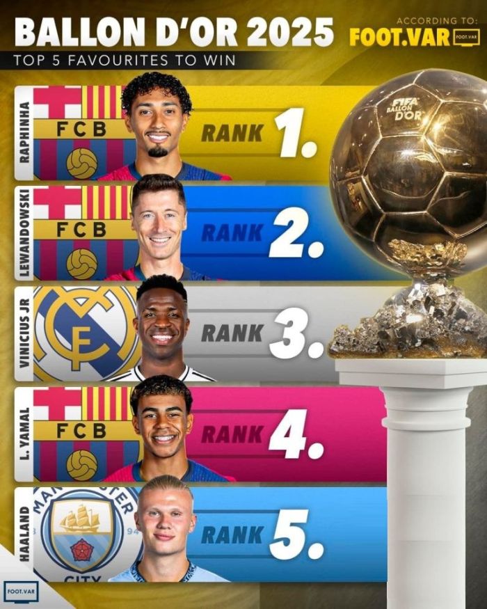 معرفی مدعیان اصلی توپ طلای ۲۰۲۵ همزمان با نزدیک شدن به دیدار پایانی جام جهانی باشگاهها، جدیدترین لیست بهترینهای سال فوتبال منتشر شد. در صدر این فهرست، عثمان دمبله، مهاجم پرانرژی تیم پاریسنژرمن، به عنوان گزینه اول کسب توپ طلا قرار دارد. جایگاه دوم به لامین یامال، ستاره جوان بارسلونا تعلق دارد. 1xbet