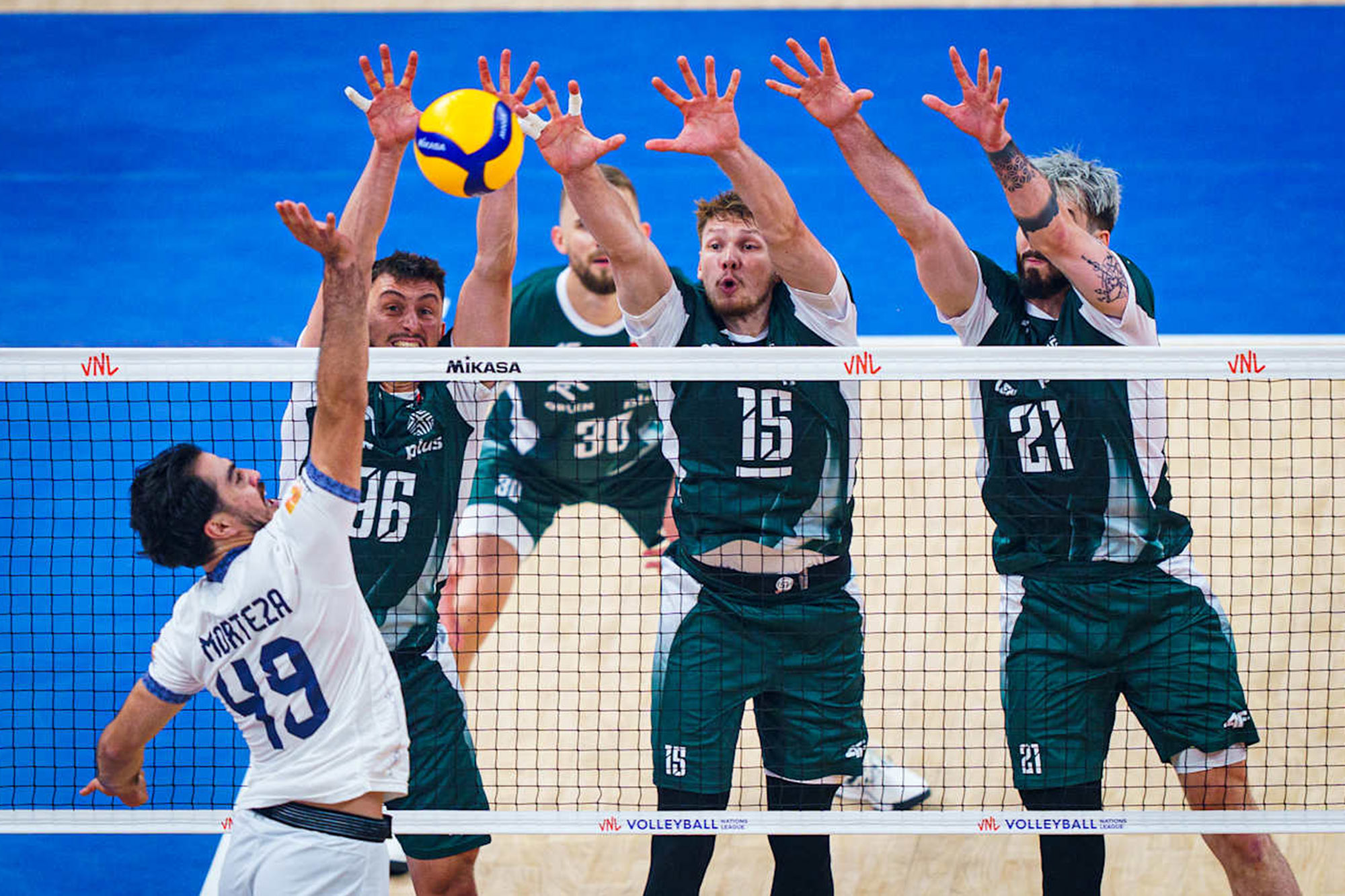ایتالیا و فرانسه هر دو با ۱۰ برد، اما با اختلاف امتیاز، به ترتیب جایگاه دوم و سوم را به خود اختصاص دادهاند. ژاپن که امتیاز مشابهی با فرانسه دارد، به دلیل تعداد کمتر ستهای برده، در رتبه چهارم قرار گرفته است. لهستان نیز با ۹ پیروزی و عملکرد قابل اطمینان، جمع پنج تیم برتر جدول را کامل میکند.